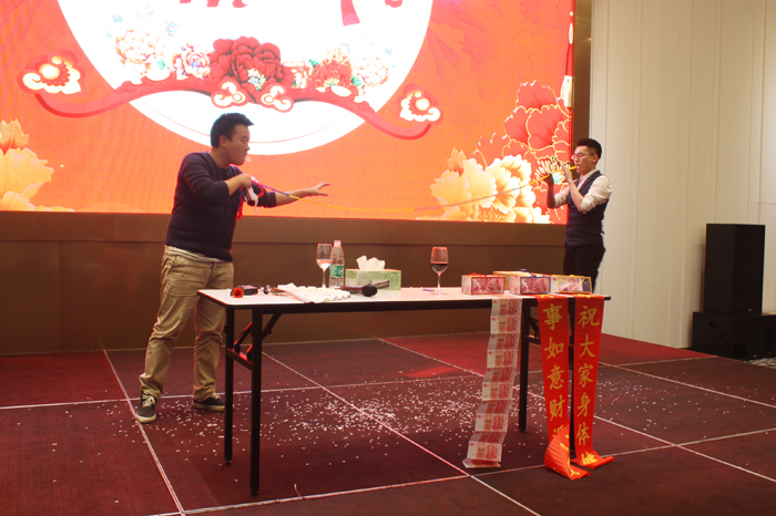 總結表彰大會之后進行了新年團拜會,團拜會在熱鬧、輕松的氛圍中進行。精彩的娛樂節目引得臺下陣陣掌聲,中間穿插的幸運大抽獎更是將會場掀起一場又一場的高潮。最后,新春團拜會在歡聲笑語中結束,新的一年,蘇州五建集團將更加美好!