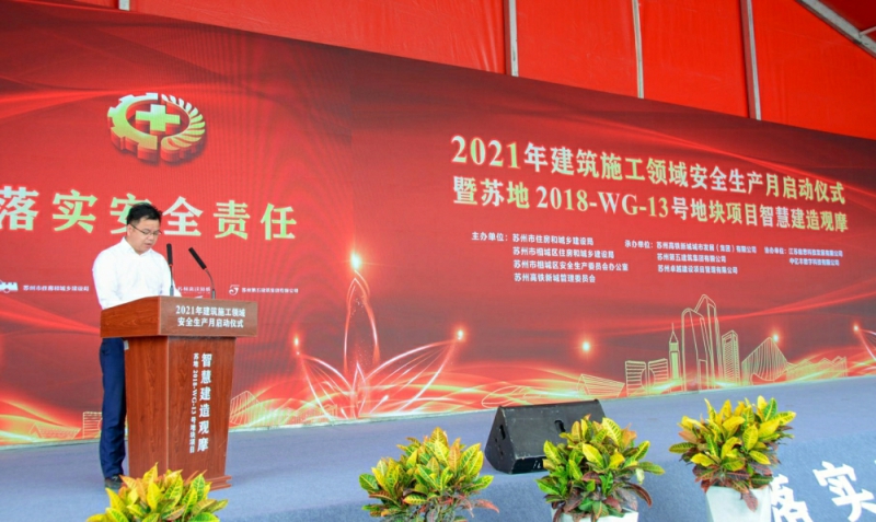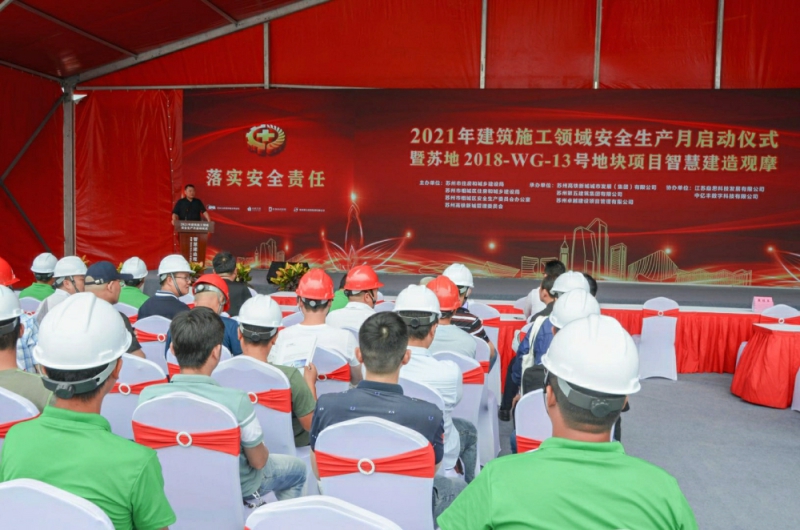 集團公司總工程師錢來源主持此次活動,總經理沈金華在內部觀摩現場發言,他指出:此次內部觀摩活動,一方面是啟動公司以“落實安全責任,推動安全發展”為主題的“安全生產月”的各項工作,另一方面是通過這次對蘇地2018-WG-13號地塊項目智慧建造內部觀摩,加快培植自己的安全生產文化,創新安全生產工作,推動企業智慧建造和觀摩工地的建設進程。