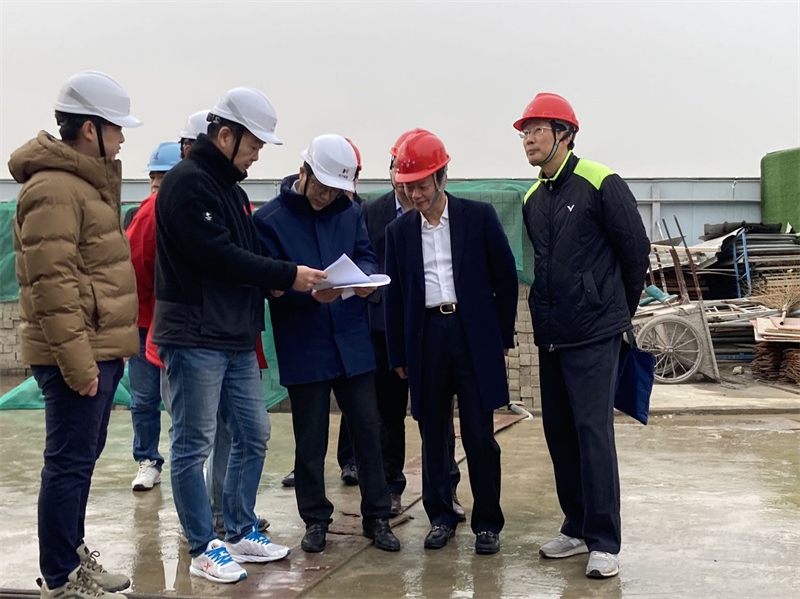 闕明清一行深入工地現場,從現場的文明施工、揚塵管控、塔吊、腳手架、鋼筋作業棚、木工作業棚等進行現場檢查指導。闕書記詳細了解項目現階段的進度和困難,對集團公司的項目施工工作給與了肯定,并且強調在保證質量的前提下,抓好安全工作。項目計劃于2022年6月底整體完工。