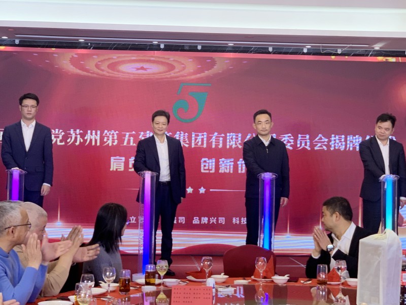 在一陣激昂奮進的音樂聲中,全體與會人員見證了滄浪新城(吳門橋街道)黨工委書記、集團公司董事長、集團公司執行董事、集團公司黨委書記、總經理一起為中國共產黨蘇州第五建筑集團有限公司委員會揭牌,完成了公司黨支部向基層黨委的組織跨越。