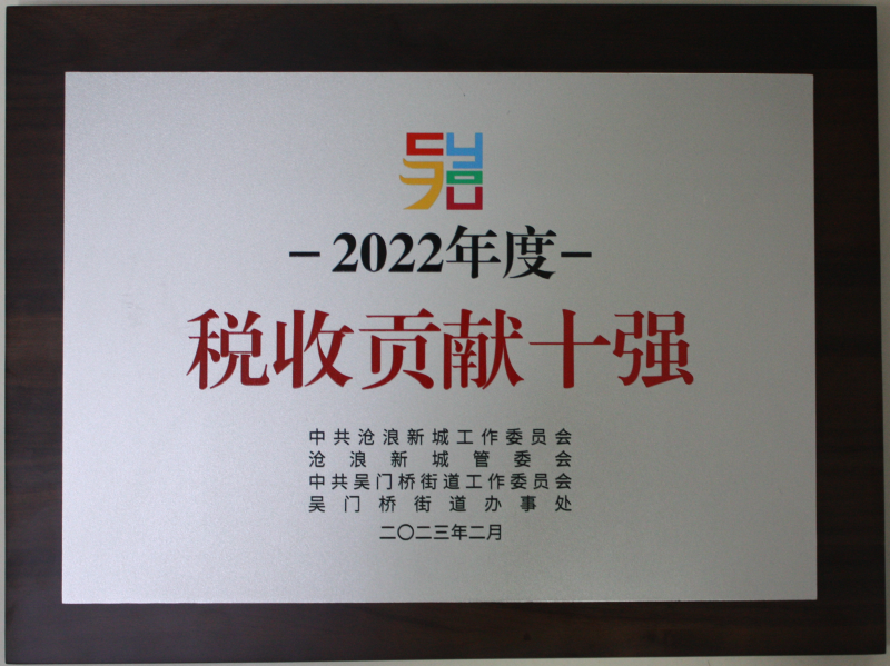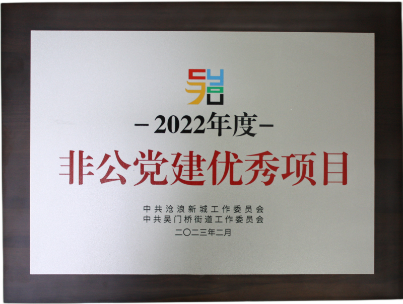 集團公司榮獲中共滄浪新城工作委員會、中共吳門橋街道工作委員會、滄浪新城管委會、吳門橋街道辦事處頒發的2022年度非公黨建優秀項目、稅收貢獻十強及公益貢獻企業。