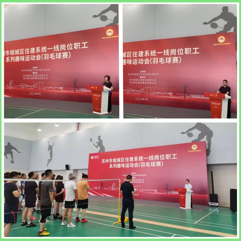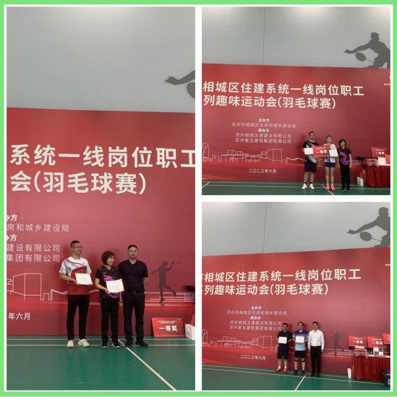 6月10日上午,由蘇州市相城區(qū)住房和城鄉(xiāng)建設(shè)局機(jī)關(guān)工會(huì)主辦,蘇州相城五建建設(shè)有限公司與蘇州第五建筑集團(tuán)有限公司共同承辦的2023年蘇州市相城區(qū)住建系統(tǒng)一線崗位職工系列趣味運(yùn)動(dòng)會(huì)羽毛球比賽,在蘇州市第二工人文化宮如期舉行。本次活動(dòng)有來自相城區(qū)內(nèi)多家企事業(yè)單位的55名參賽選手報(bào)名參加,包括蘇州市相城城市建設(shè)發(fā)展有限公司、中建安裝集團(tuán)(蘇州)有限公司、中億豐建設(shè)集團(tuán)股份有限公司、蘇州蘇明裝飾股份有限公司、蘇州方正工程技術(shù)開發(fā)檢測(cè)有限公司、蘇州市相城市政建設(shè)投資(集團(tuán))有限公司、蘇州市相城檢測(cè)股份有限公司等。本次羽毛球比賽的競(jìng)賽方法為單項(xiàng)賽,分為三個(gè)項(xiàng)目:男單、女單、混雙,三個(gè)項(xiàng)目同時(shí)進(jìn)行。集團(tuán)公司共派出10名運(yùn)動(dòng)員參加比賽,其中3名同志參加男單,1名同志參加女單,6名同志參加混雙。他們?cè)谫悎?chǎng)上奮力廝殺隊(duì),一路過關(guān)斬將,充分發(fā)揚(yáng)了我司員工頑強(qiáng)拼搏、堅(jiān)持到底的精神風(fēng)貌。每場(chǎng)開始前,仔細(xì)研究對(duì)方戰(zhàn)術(shù),制定合理有效地應(yīng)對(duì)措施,比賽中團(tuán)結(jié)協(xié)作,與對(duì)手斗智斗勇、敢拼敢打、每球必爭。