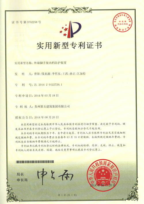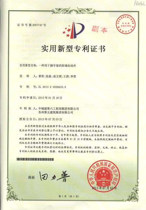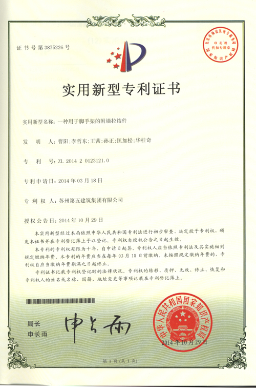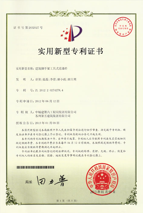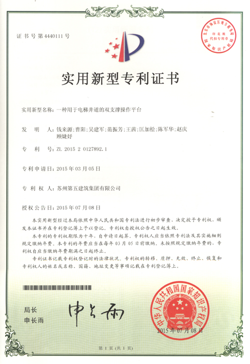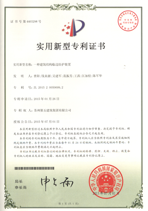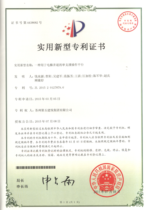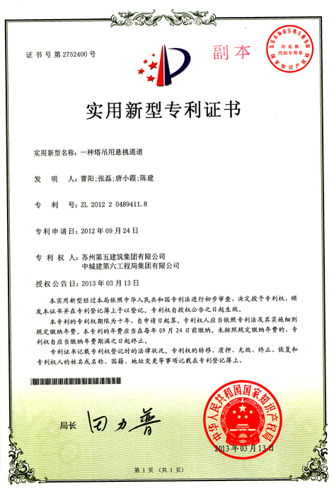 建筑用拼裝式懸挑卸料平臺”實用新型專利