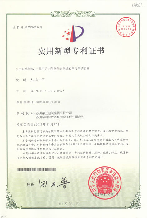 “太陽能集熱系統的停電保護裝置”實用新型專利