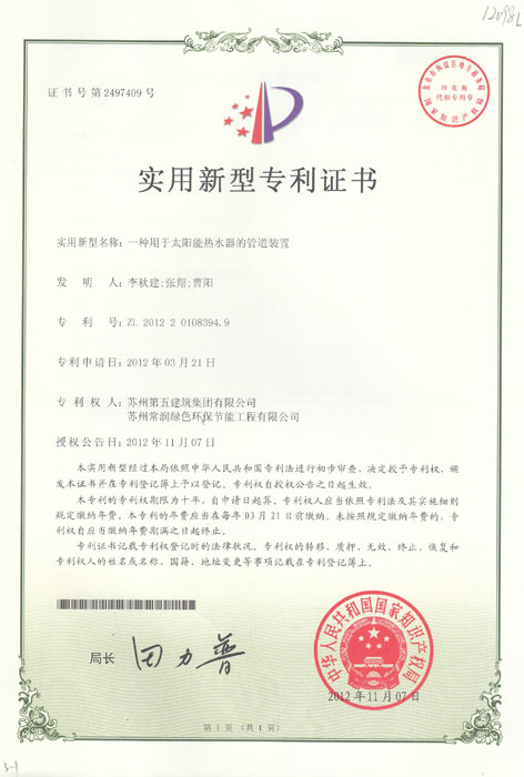“一種用于太陽能熱水器的管道裝置”實用新型專利