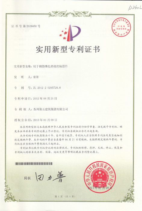 “鋼筋綁扎搭接的隔筋件”實用新型專利