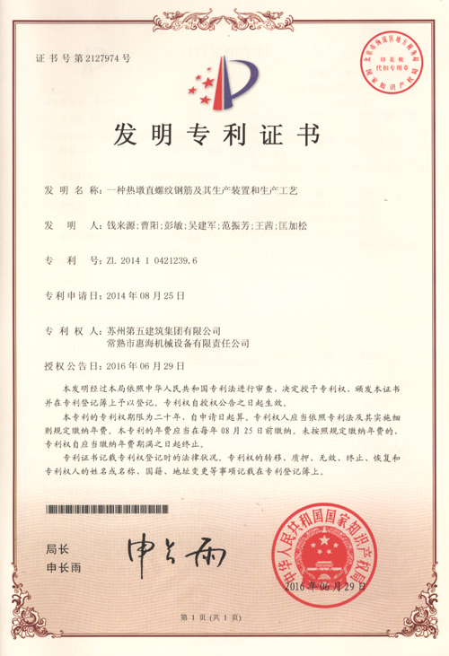 熱墩直螺紋鋼筋及其生產裝置實用新型專利