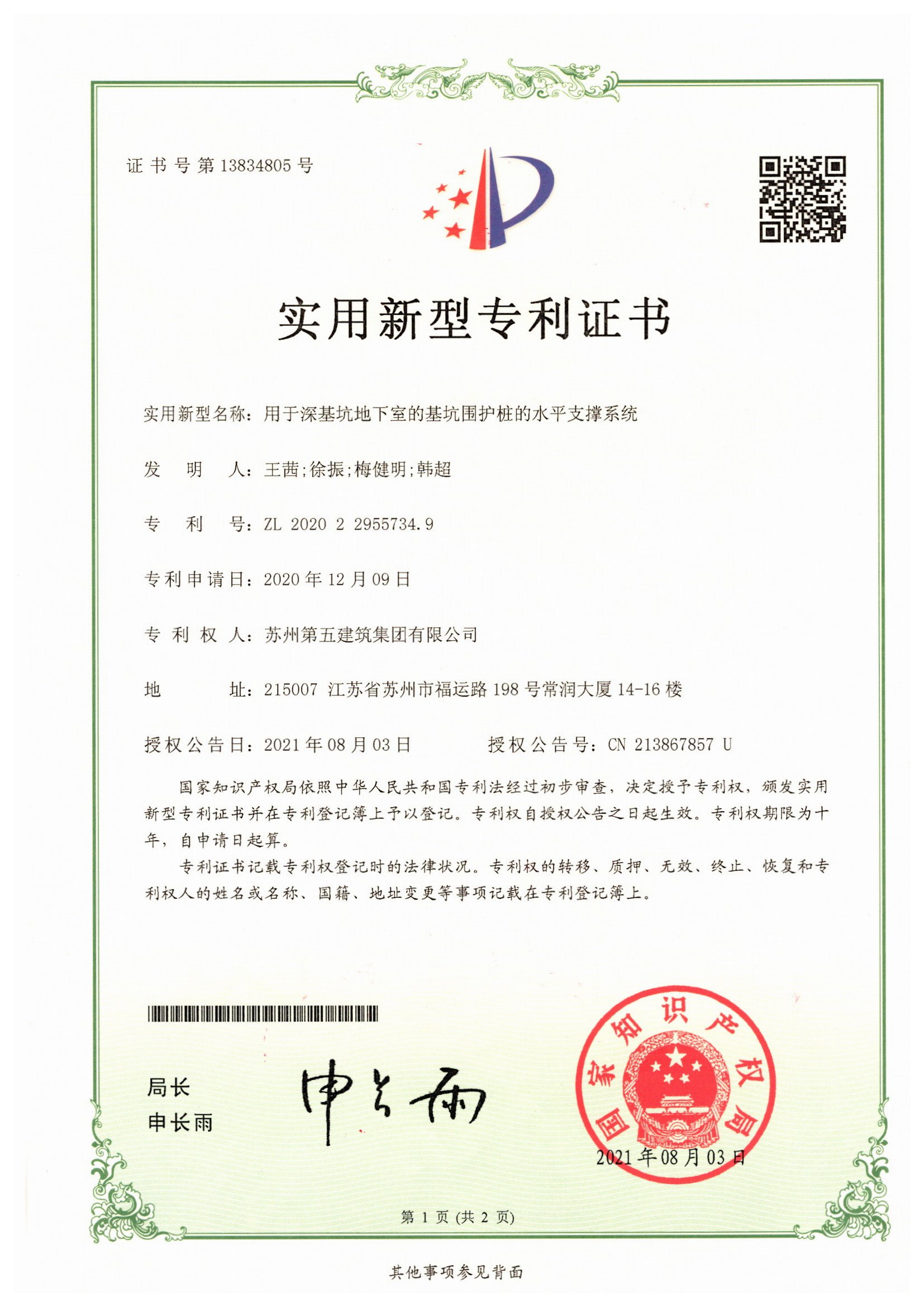 用于深基坑地下室的基坑圍護樁的水平支撐系統實用新型專利